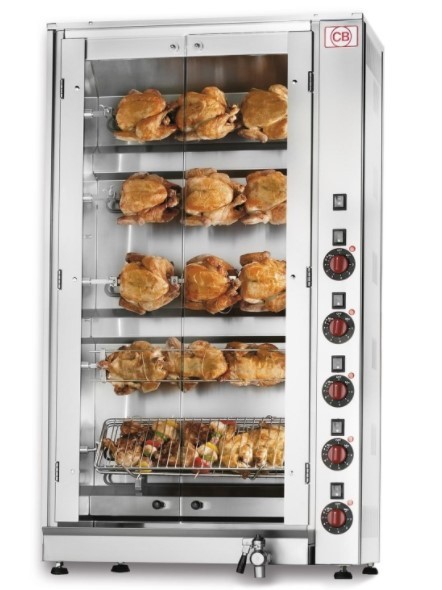 Cette rôtissoire électrique professionnelle à tiges simples, est un équipement professionnel qui permet de cuir jusqu'a 30 poulets .