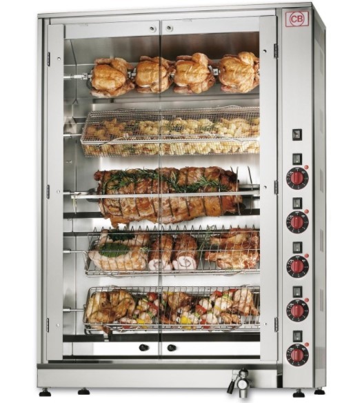 rôtisserie électrique planétaire offre plusieurs possibilités de cuisson (rôtis, roast-beef, pâtes, légumes gratinés, etc.).