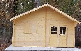 - Parois : Madriers avec rainure languette en sapin épaisseur 42 mm. Coupe chalet pour un assemblage des parois avec angle solide et étanche. Coupe biseautée en bout de lames.