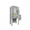 L’air chaud de traitement passe à la trémie de retenue du matériau, de bas en haut, où il chauffe les granulés en éliminant l’humidité superficielle et en la vaporisant à l’intérieur du flux d’air chaud.