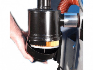 – Sortie d’air avec élément de filtrage en papier inséré dans un conteneur métallique