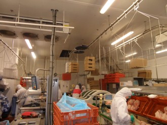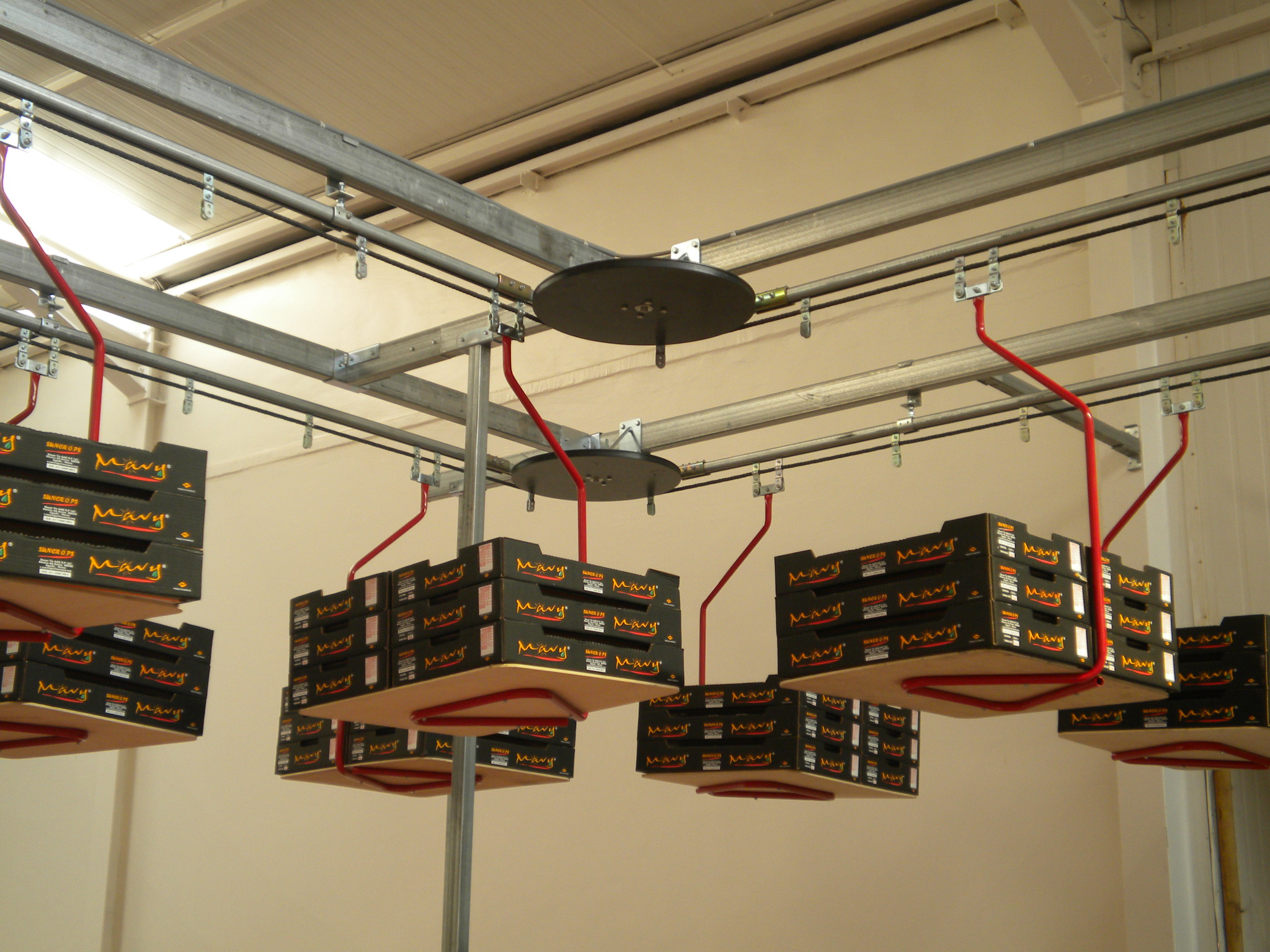 - La société FIZZY (confiserie) avait un problème d’évacuation des cartons vides aux postes de travail à destination du compacteur : encombrement des postes de travail, déplacement des opérateurs ... CMAT a mis en place un convoyeur aérien, où chaque opérateur dépose ses cartons sur des balancelles qui sont automatiquement déchargées dans le compacteur par l’intermédiaire d’une goulotte et d’un bras pneumatique.