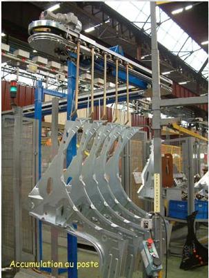 - Entraînement des trolleys débrayable pour accumulation au poste de travail.