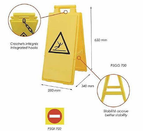 Elle est fabriquée en polypropylène et est de couleur jaune vif, ce qui ne manquera pas d'attirer l'attention sur le danger encouru.
