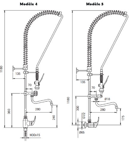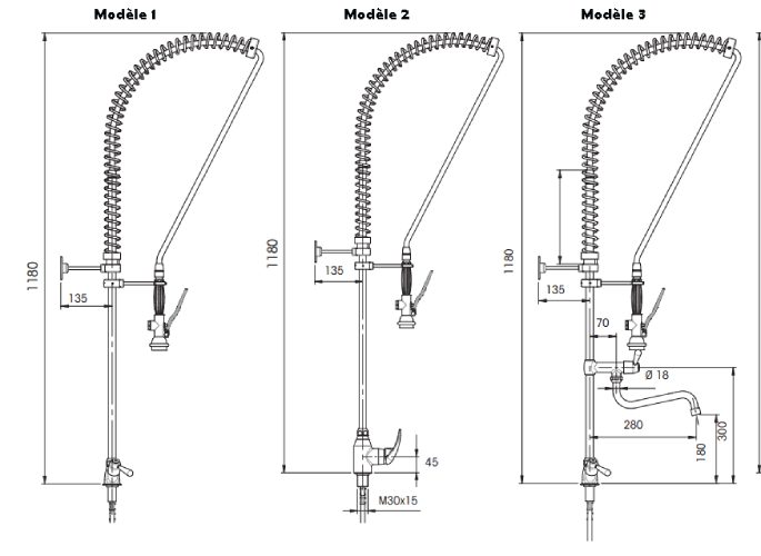 Chaque robinet industriel douchette est livré complet avec tous les tuyaux flexibles et accessoires nécessaires à l’installation.