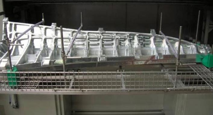 Les pièces pour des ailes d’avion sont en rotation dans la machine à laver pendant le lavage.