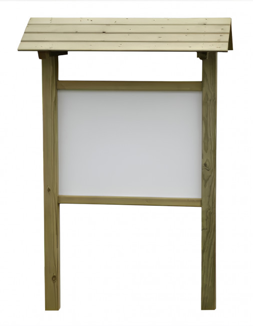 La toiture en clin plat, fabriquée elle aussi en bois résineux traité, protège les documents affichés contre la pluie tout en accentuant l’aspect naturel du produit.