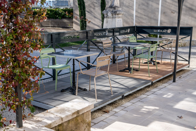 Les chassis en acier galvanisé vous offriront une durabilité quelques soit l'environnement. Nos plateaux en lames composites réalisés à partir de fibres de bois recyclées d’origine française, apportent une finition esthétique et durable.