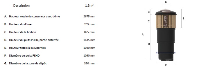 Ce conteneur semi-enterré se distingue par sa capacité à maintenir des températures basses sous le sol, ce qui ralentit la croissance des bactéries responsables des mauvaises odeurs.