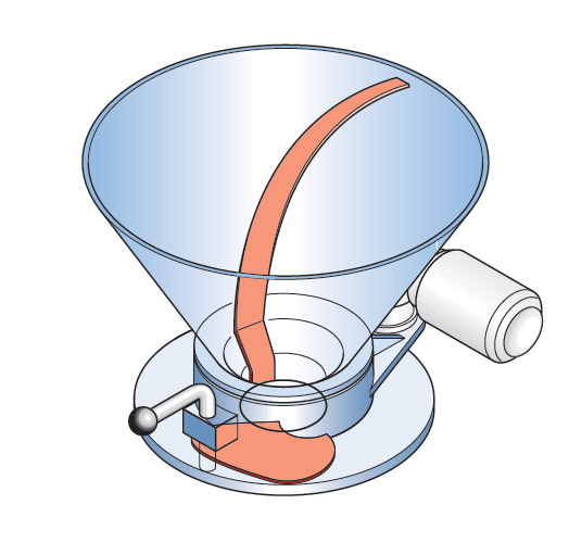 Le dosage des produits en vrac peut se fair à l’aide d’une spirale de dosage, d’une vis de dosage, d’une écluse, d’un couloir vibrant. Même sans régulation, le débit de dosage doit rester constant sous réserve que la densité du produit ne fluctue pas et que l’outil de dosage soit chargé à 100 %.