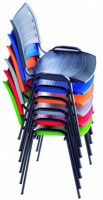 Le piétement empilable permet de manipuler et stocker facilement les chaises.
