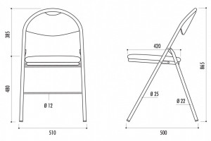 Cette chaise pliante est dotée d’un piètement en acier Ø 25 mm, proposé au choix avec une finition peinture époxy noire ou chromée.