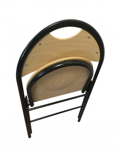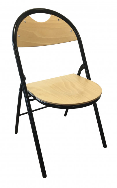 La chaise Florence est une chaise pliante avec une assise et un dossier en bois : hêtre verni naturel. Le piétement pliant métal est disponible en époxy noir ou en version chromée. Elle est munie de patins anti bruit. Une barre de renfort en acier est fixée sous le siège, il y a également une autre barre de renfort sur les pieds arrières de la chaise.