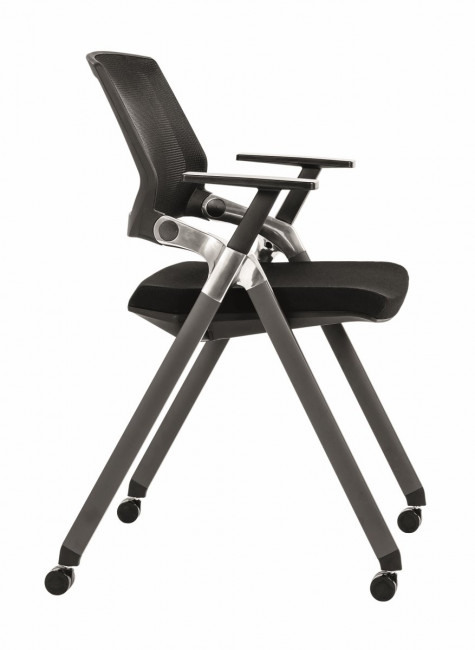 La chaise ZENITUDE est une chaise de conférence à roulettes avec une inclinaison flexible du dossier filet. Grace à son dossier en résille noire, il apporte un soutien confortable à cette chaise. Le piétement est anthracite. Des roulettes complètent le piétement, afin de pouvoir le déplacer plus facilement. La chaise est munie d'accoudoirs en polypropylène. Deux gammes de tissus sont disponibles : tissu Bondai M1 non feu et tissu Bloom (enduit). Grace à sa fonction abattante, elle peuvent se ranger plus facilement l'une contre l'autre.