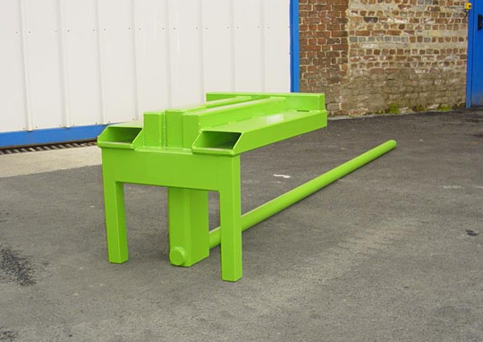 longueur 1500mm l"entraxe 500mm, c"est pour decharger des bnes d"aluminium de 800mm de diametre.