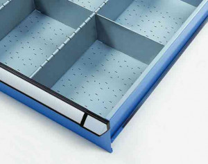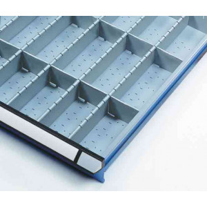 Large variété d'exécution et modularité grâce aux kits préconfigurés et aux pièces détachées librement combinables, tels que parois à fentes, plaquettes séparatrices, bacs en plastique, godets, etc.
