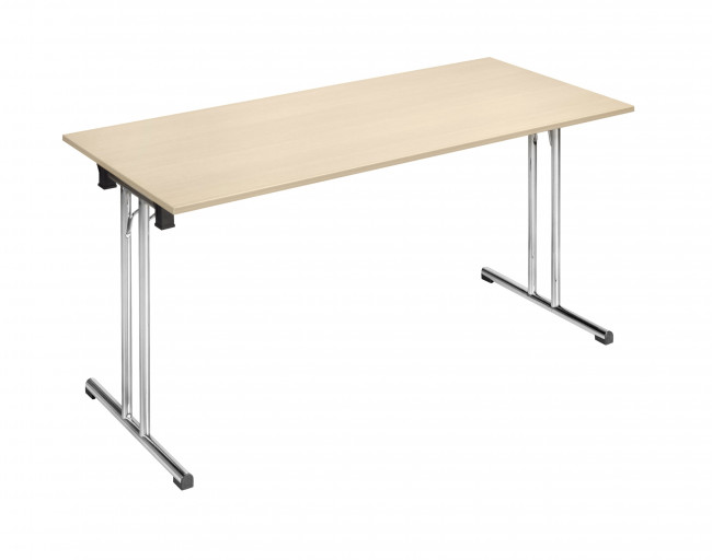 Les cales d'empilage intégrées permettent un rangement efficace et ordonné lorsque les tables ne sont pas utilisées.
