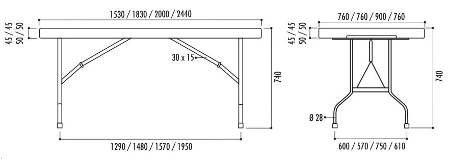 25/10/2024proposition tarifaire pour 30 X Table pliante plastique Longueur (mm) : 1830 Largeur (mm) : 760 Hauteur (mm) : 740 Charge supportée (Kg) : 500 Poids (kg) : 16 Réf : 730615198