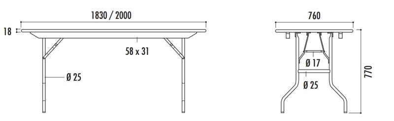 24/12/20242 tables Table pliante en bois rectangulaire - L.1830 mm ou 2000 mm