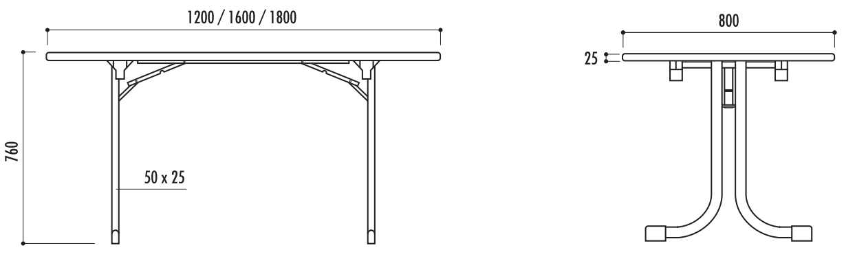 La version L. 1600 x l. 800 x H. 762 mm (29 kg) offre une surface intermédiaire idéale pour les salles de formation.