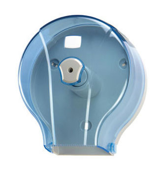 Construit avec un corps en ABS gris et une façade en SAN bleu transparent, il est compatible avec des rouleaux de papier hygiénique de 200 mètres (diamètre maximum de 190 mm).