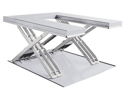 Je recherche une table élévatrice Inox pneumatique en U 1000kg 1350*800 avec tige de vérins en inox.