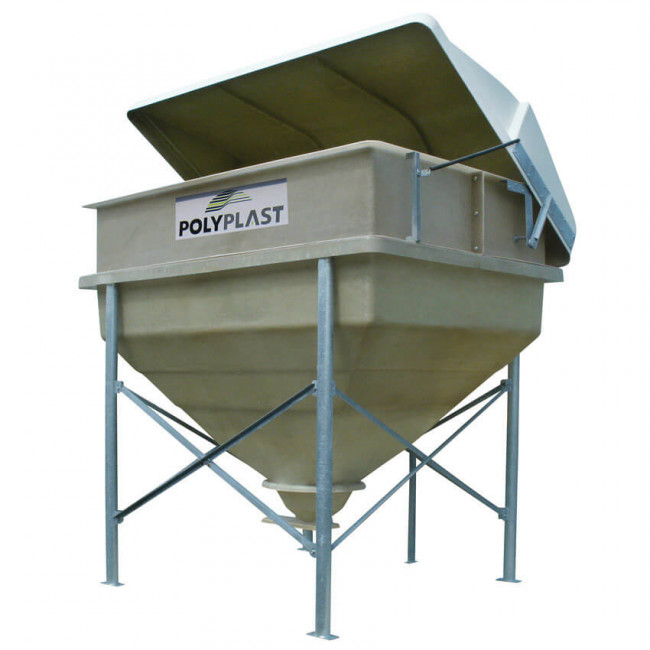 Cette trémie de stockage rectangulaire permet de stocker des aliments.