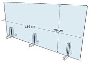 Demandes de devis pour Barrières de protection en Plexiglas - Dimensions ( L x h ) : 75 x 70 cm ou 150 x 70 cm - ép : 10 mm - Avec 2 ou 3 pieds
