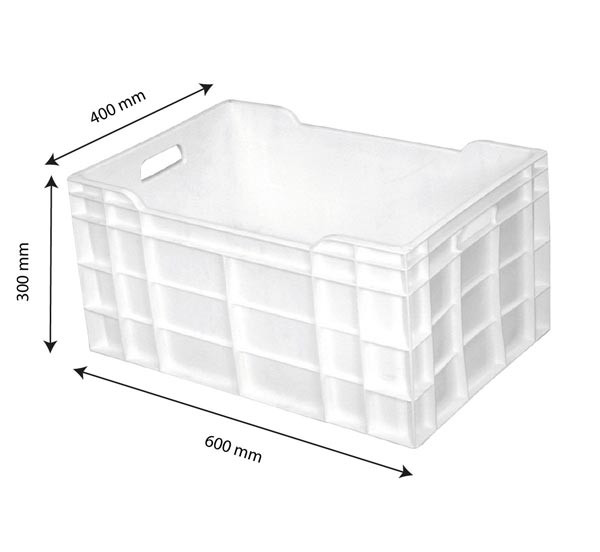 La caisse affiche une grande résistance aux chocs, à la casse et à la charge latérale verticale. Sa conception en PEHD blanc absorbe les impacts du quotidien lors des opérations de manutention.