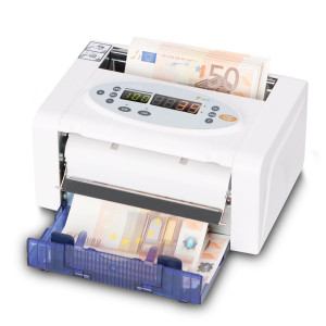 Cette compteuse de pièces se prête particulièrement pour le comptage professionnel de capacités très grandes. Ayant préchoisi la sorte de pièces, la machine rejette correctement tous les formats de pièces déviantes. Cette machine se distingue par sa stabilité, son menu simple et son afficheur bien-lisible. Ainsi, elle garante une convivialité absolue.