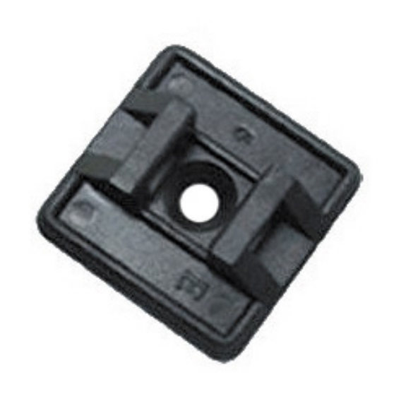 Embases adhésives d'ancrage 2 voies. En plastique ABS ces embases sont disponibles en 2 dimensions : 19 x 19 mm et 27 x 27 mm.