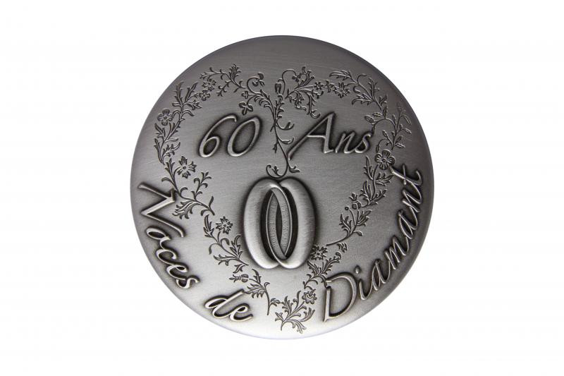 La médaille événementielle avec gravure noces d'Or ou de diamant est le souvenir parfait pour célébrer ces moments exceptionnels de cinquantième ou soixantième anniversaire de mariage.