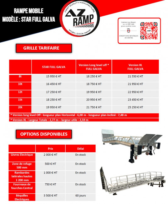 La gamme à été spécialement développée pour répondre parfaitement à ces contraintes là. Nous sommes le seul fabricant à proposer 20 ans de garantie sur la surface de roulement de ses rampes de chargement !