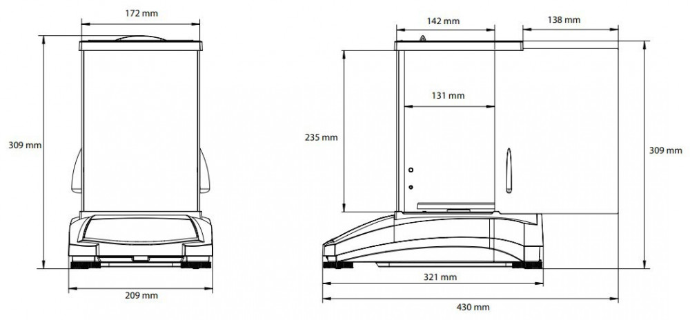 Les dimensions compactes de 321 x 309 x 209 mm permettent d'installer cette balance professionnelle sur tous les postes de travail.