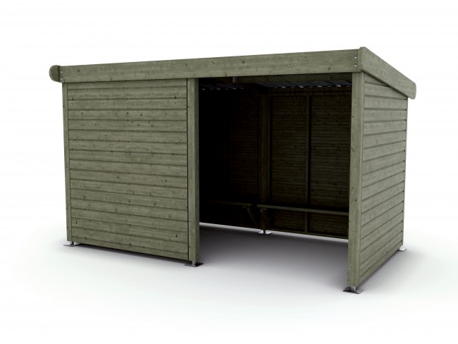 Cet abri voyageurs en bois pin est un équipement urbain permettant aux piétons un espace à l'abri des intempéries.