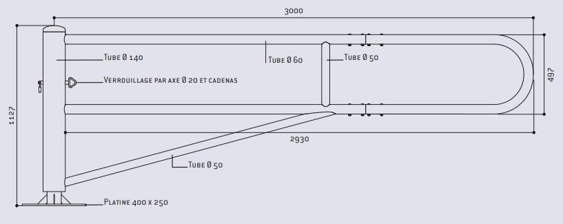 Fiche technique - Barrière tournante - Long. 3000 mm - Galvanisé ou peint sur galva