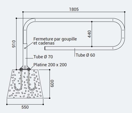 Nous sommes professionnels et nous voulons protéger un passage par 2 barrièreS manuelles ; veuillez-trouver les dimensions ci-dessous de la barrière qu"il nous faudrait :