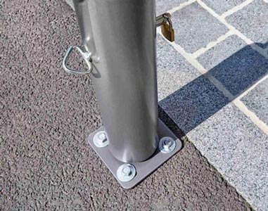 La fermeture est assurée par une goupille de 20 mm de diamètre et un cadenas, fournis dans le kit.