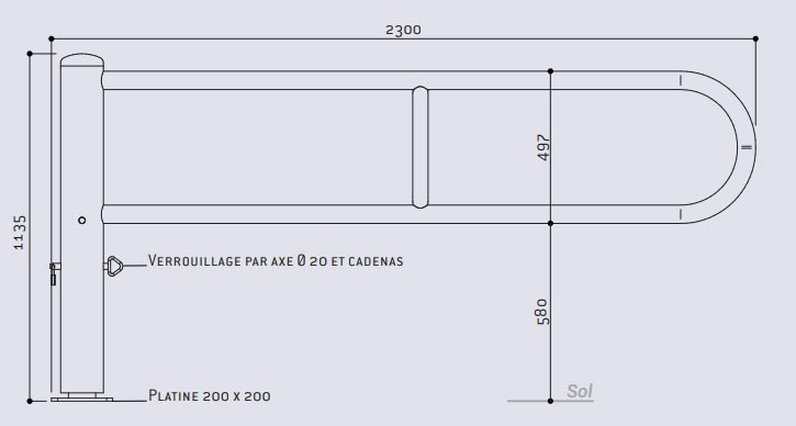 Longueur : 2000 ou 2300 mm - Acier ø 60 mm - Sur platine
