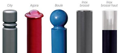 Cinq modèles sont disponibles : City, Agora, Boule, Inox brossé ou Inox brossé haut.
