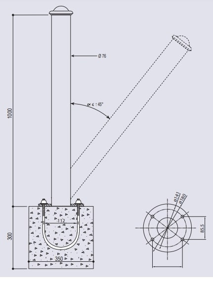 | Réf. TC :751839678 | Potelet inclinable de ville | Ø 76 | 1100 | Agglo | 10 | -