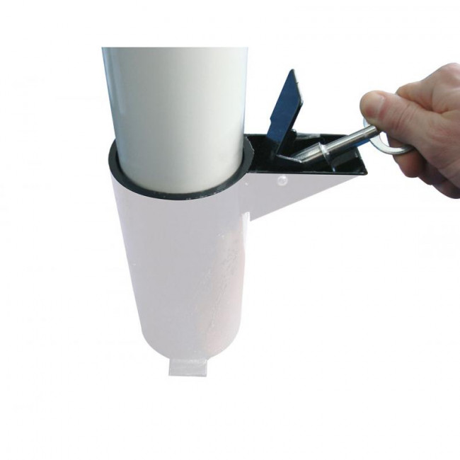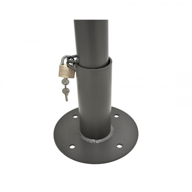 Le modèle sur fourreau à sceller (Réf. 206580) offre une hauteur hors sol de 1210 mm et se verrouille par clé triangle pour une sécurité maximale.