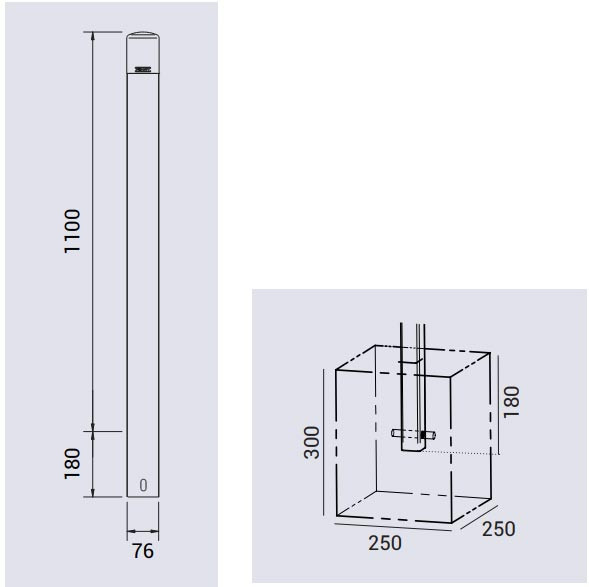 D’une hauteur de 1100 mm ce potelet pour écoles est constitué d’un tube acier de 76 mm de large.