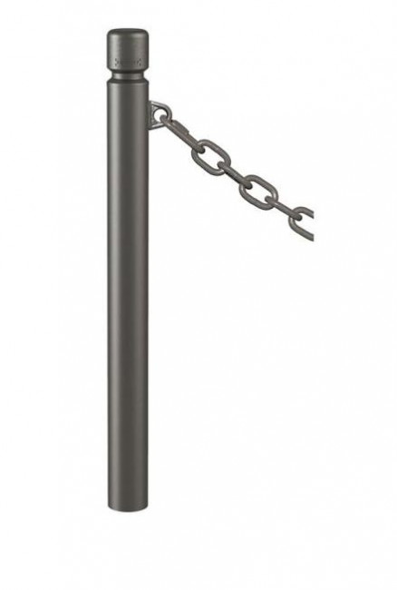 Ce potelet à chaines en tube acier est un mobilier urbain conçu pour délimiter les espaces publics.