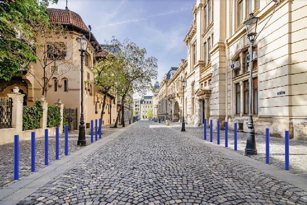 Réf. TC : 196581632Potelet de ville à tête bombée 1200 76 1000 Bleu-RAL 5010