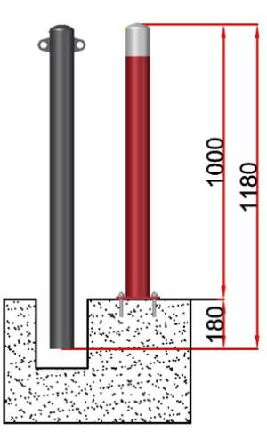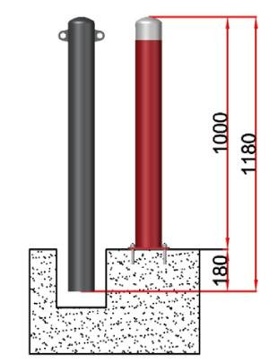 1180 mm (1000 mm hors sol + 180 mm pour scellement)
