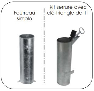 - Potelet amovible avec serrure carré pompier, scellé dans le sol