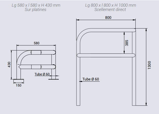 Conçu en tube acier Ø 60 mm, il s'adapte à vos contraintes avec deux hauteurs disponibles et deux modes de fixation.