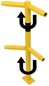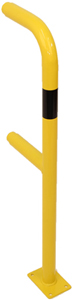 Acier galvanisé Diamètre : 48,3 mm Hauteur : 1000 mm Sur platine de 150 x 100 x 6 mm Coloris: jaune avec bande noir
