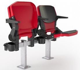 Ce siège de gradin rabattable est équipé d'accoudoirs et offre la possibilité d'ajouter divers accessoires optionnels tels que des porte-verres.